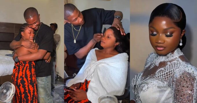 Without hesitation, her brother got back to work, styling her hair into a C-cut frontal hairstyle. In a later clip, the bride looked stunning with her hair beautifully styled hair.