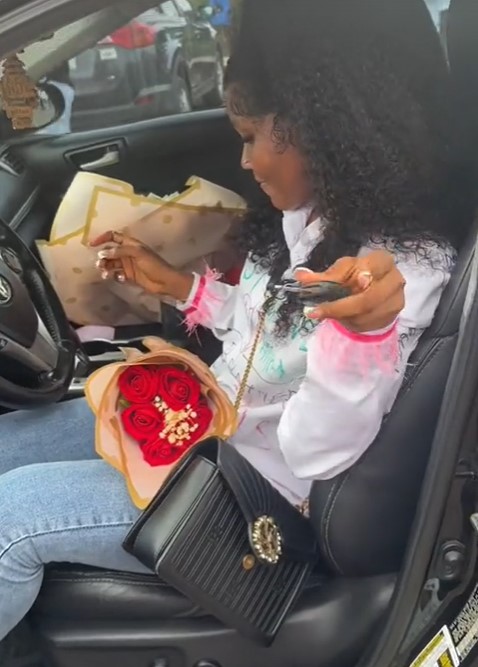 In the video, the lady was glowing with joy as her partner presented the car key with a money bouquet, heart-shaped cake, and other goodies.