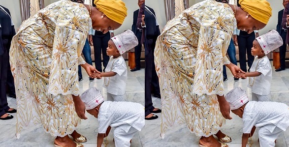 My Princes doing it the Yoruba way by “dobaleing” to greet the lovely wife of the VP. What a joyful sight. Credit to mummy @jibssssss for teaching us cultural values. Babe, i couldn’t have dreamt of a better mother for my kids, ure simply the best