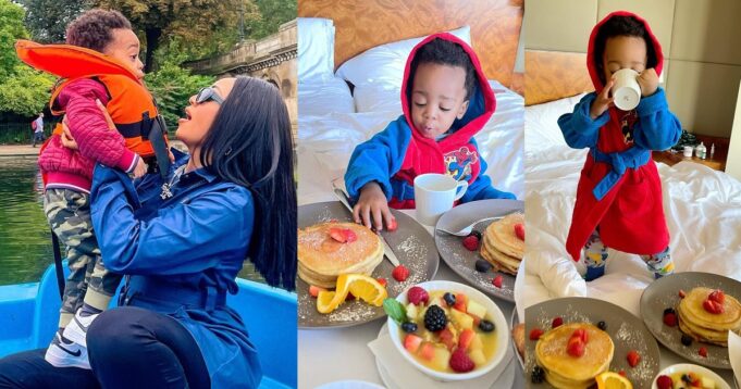 Nollywood actress and entrepreneur, Regina Daniels and her son, Munir Neji Ned Nwoko are currently vacationing in London.