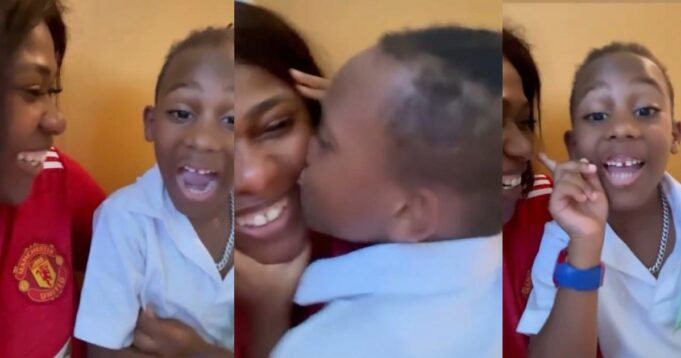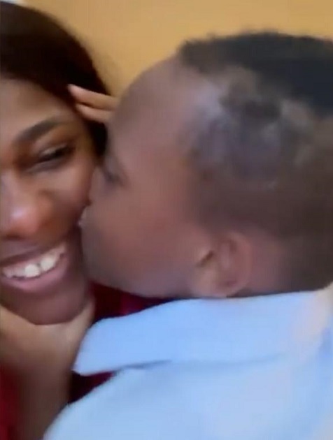 In the video which captured the adorable mother and son moment, the proud mum of one and her lovely son, Mathew declared their love for each other.