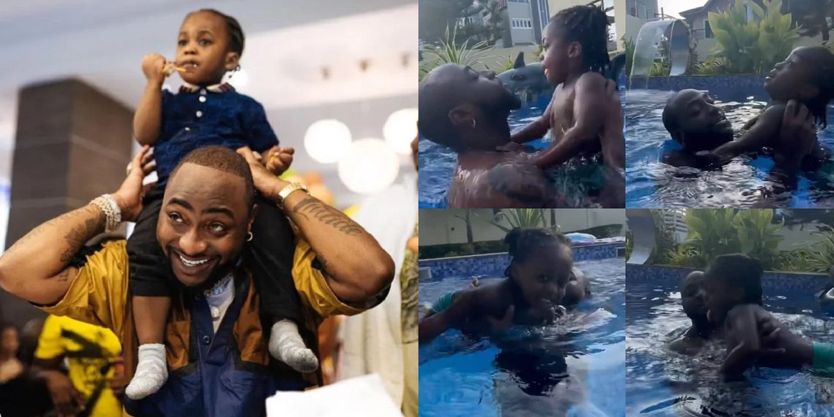A rather adorable video of Nigerian music executive, Davido bonding with his lovely little son, Ifeanyi as he taught the young boy how to swim has melted hearts on social media.
