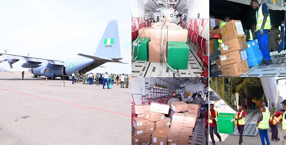 Speaking after inspecting the delivered items, Alhaji Abdullahi thanked the Chief of the Air Staff, Air Marshal Sadique Abubakar, for the deployment of aircraft to airlift the items to Abuja.