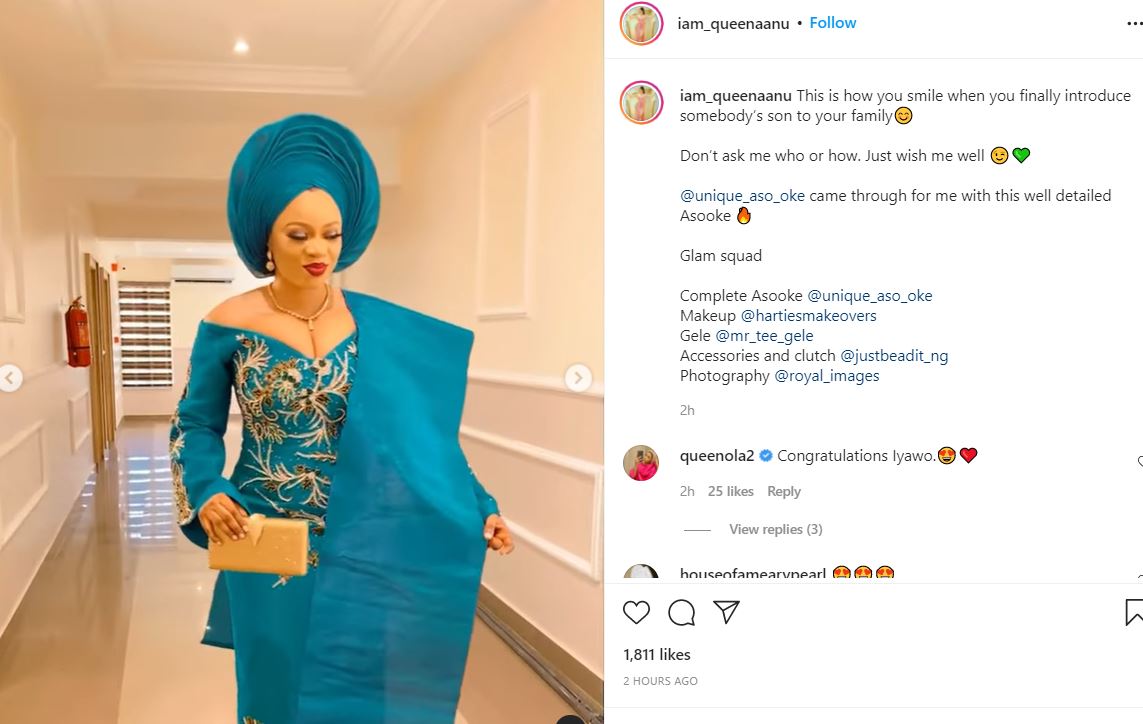 Anu shared a video of herself in a traditional wedding attire and in her caption noted that she recently formally introduced her man to her man.