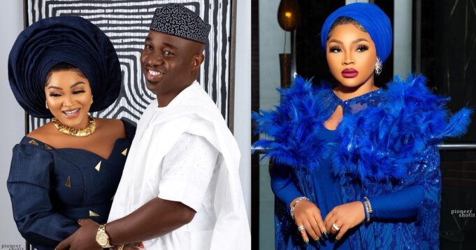 An unbothered Mercy Aigbe has now reintroduced herself as “Hajia kazim Adeoti”, while sharing an adorable photo of herself and husband.