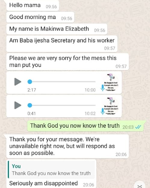 The aggrieved mother has now taken to her Instagram page to share more evidence against the actor. Princess shared an alleged chat with a lady identified as, Makinwa Elizabeth who claims to be Baba Ijesha’s secretary.