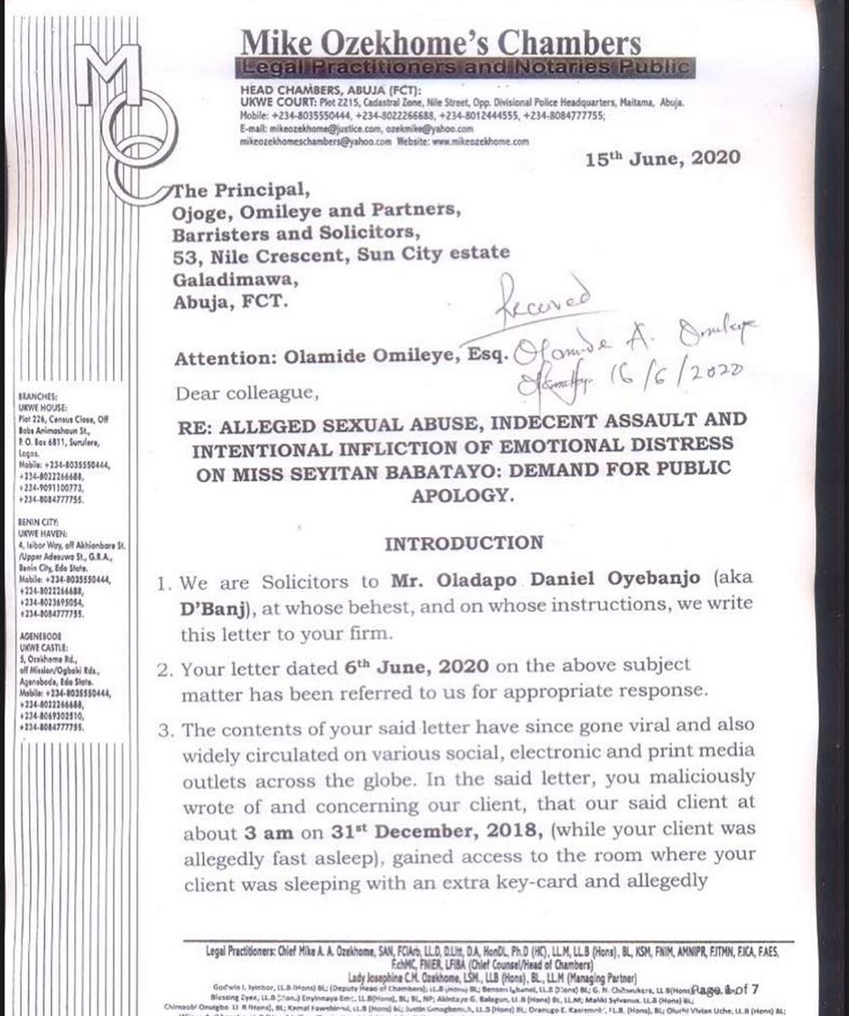 While addressing the ‘lies from the pit of hell’, Dbanj demanded that his accuser tenders an apology and also pay N100m compensation in 48 hours or face legal action.