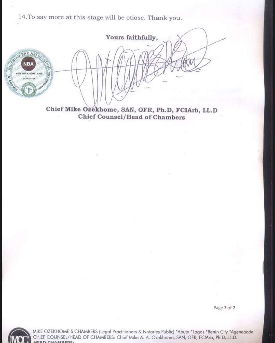 I did not want to dignify the slurs with a response but it appears my silence has empowered my accusers to think i have been scared into the shadows so I would like to state that This Accusation are false and ludicrous and Have been handed over to my Legal Team, while the Nigerian Police is Investigating the Criminal aspect of it.