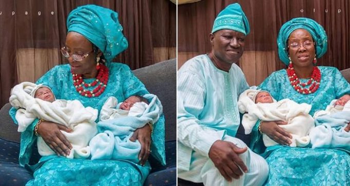 A Nigerian couple have been filled with amazing grace after they were tremendously blessed with a double portion following almost three decades of childlessness.