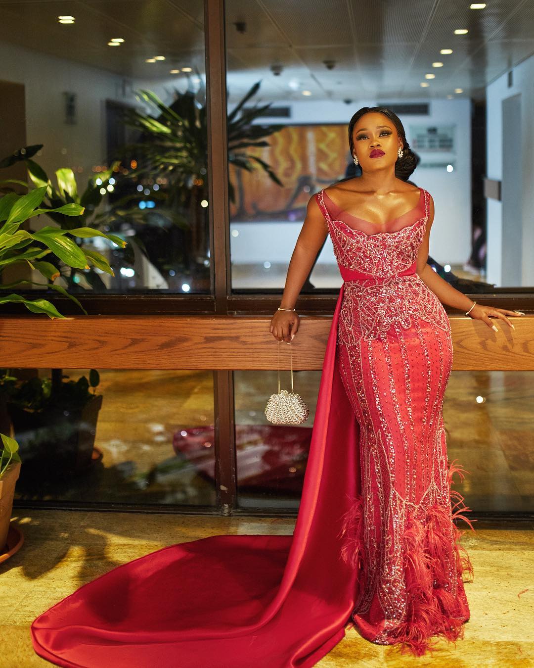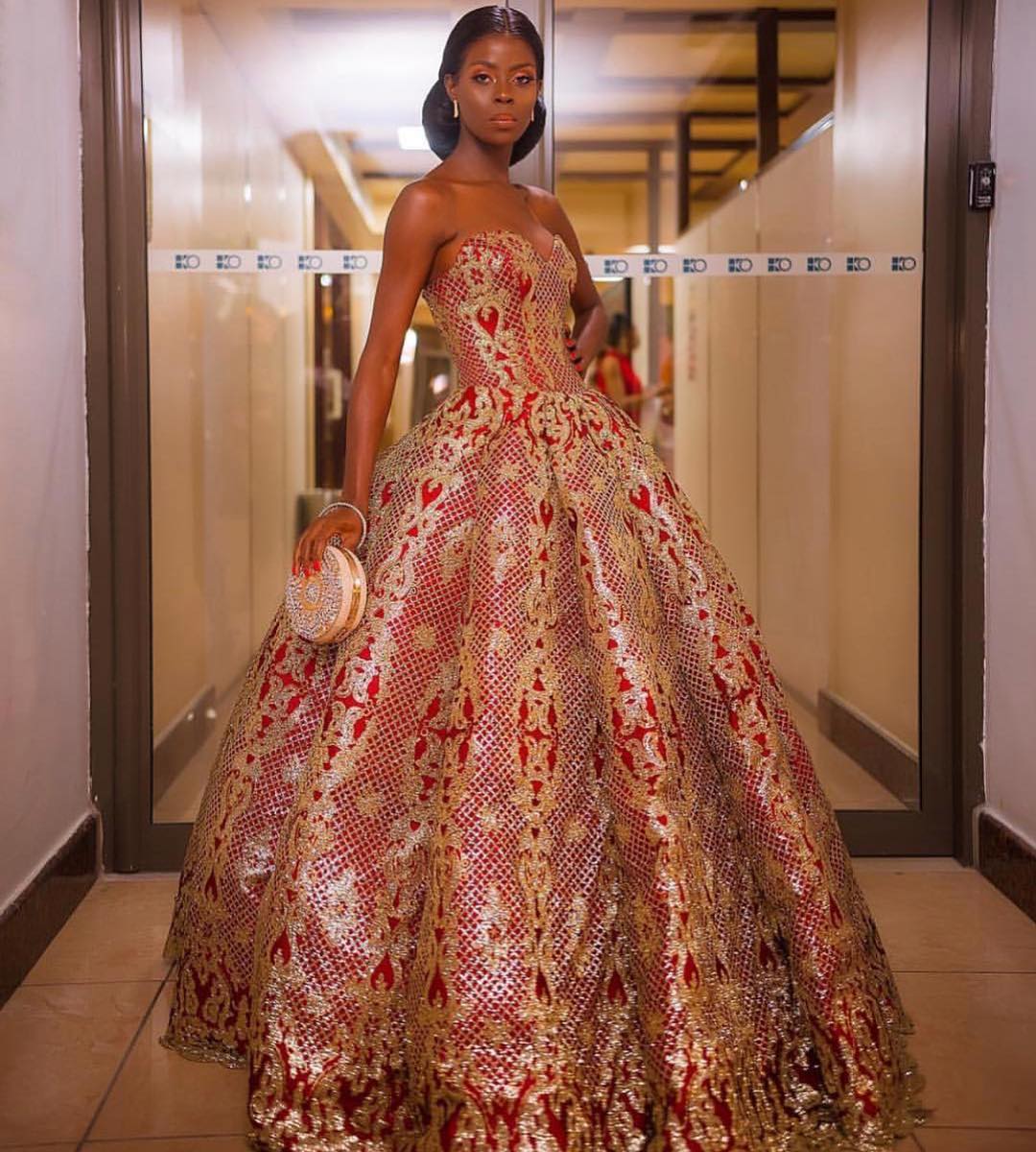Former Big Brother Naija Housemate, Khloe stepped out for the 2018 African Magic Viewers Choice Award (AMVCA 2018) rocking the below beautiful gown made by Toyin Lawani of Tiannah Styling.