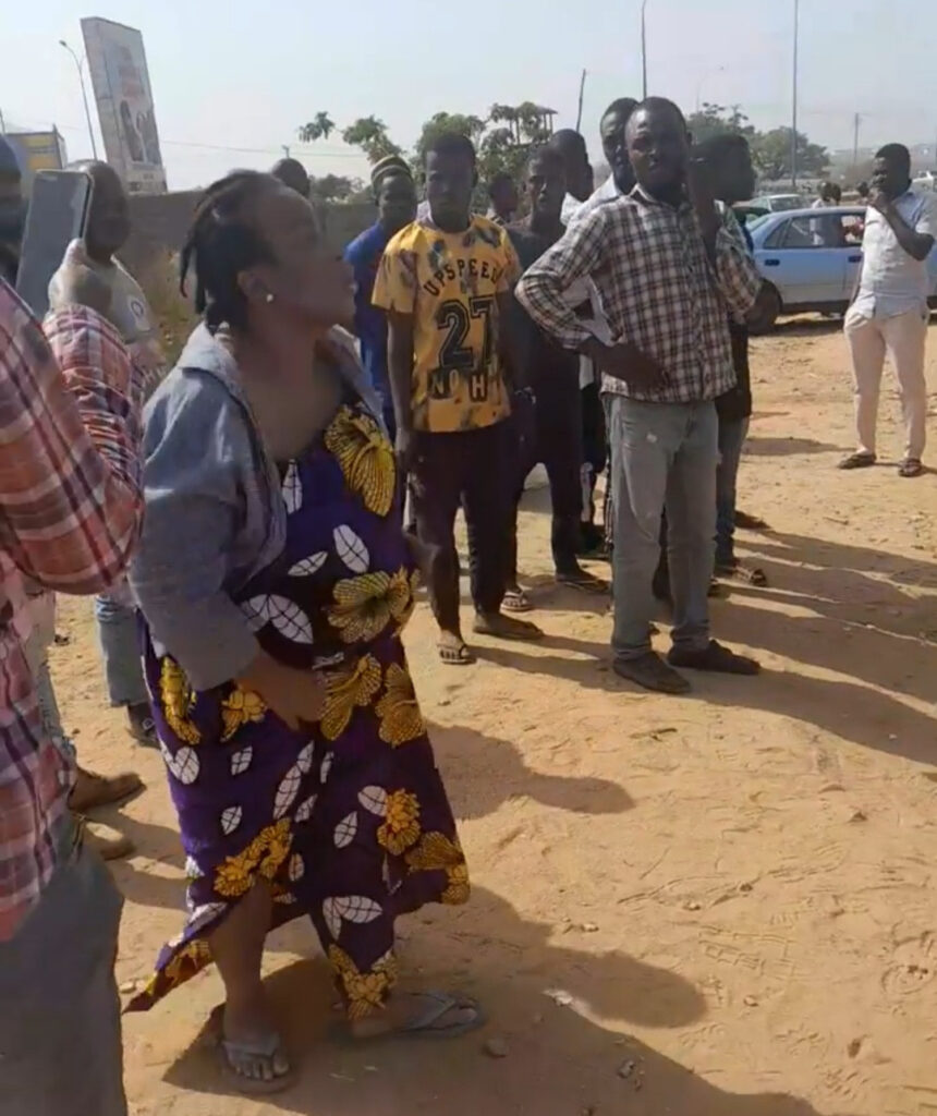 There was pandemonium at Jahi Junction in Abuja after a woman suddenly ran “mad” and began calling on a certain Angela to leave her husband alone.