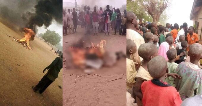 According to the report, the irate mob beat him to death, dragged his lifeless body around the village before setting it on fire.