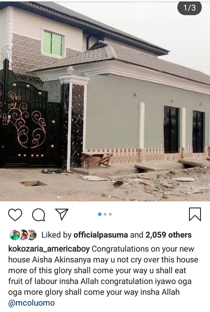 MC Oluomo congratulated his wife by sharing photos and a video of the house. In the caption, he wrote: