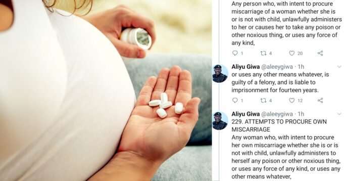 Any person who unlawfully supplies to or procures for any person any thing whatever, knowing that it is intended to be unlawfully used to procure the miscarriage of a woman, whether she is or is not with child, is guilty of a felony, and is liable to imprisonment for three years.If you already know this and you still don’t care. My brother and sister God will surely expose you. Amen…” He tweeted.