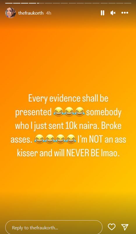 She shared a series of screenshots showing her sending money to Rambo to back up her claim that he’s broke.