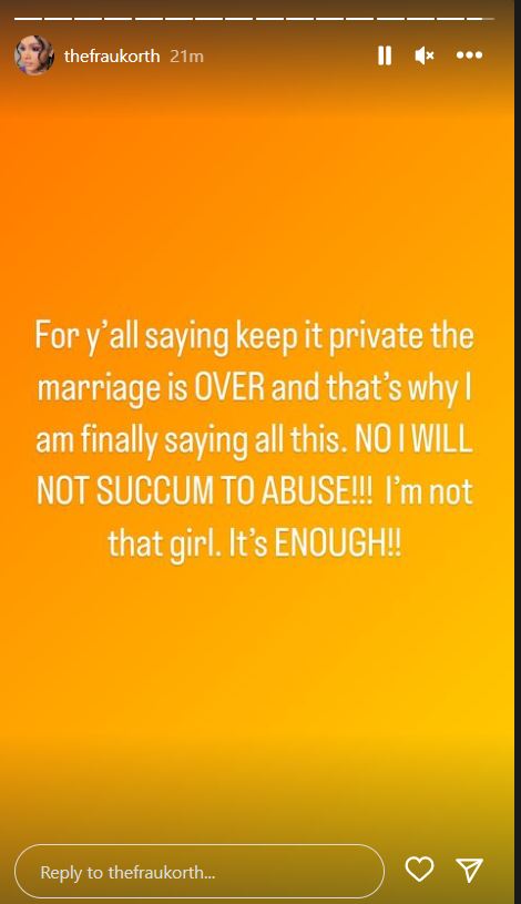 Korth, who insisted that her marriage with the singer is over and that she would no longer be subjected to abuse, shared a video showing a door that was bashed in, and she alleged her “abusive” husband did it.