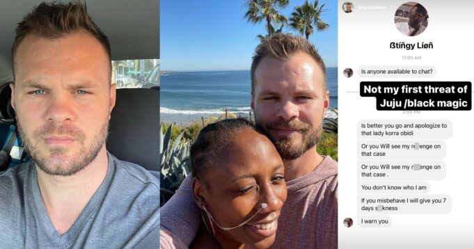 Nigerian dancer, Korra Obidi’s estranged husband, Justin Dean, has shared threat messages he’s received from Nigerians following his split from the dancer.