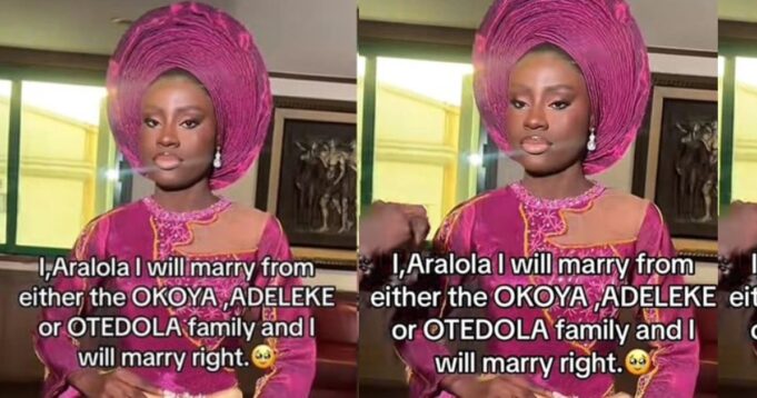 The lady identified as @_ara.aaa_ shared a video of herself dressed in an Aso-Ebi attire resembling a Yoruba bride all set for her traditional wedding ceremony.