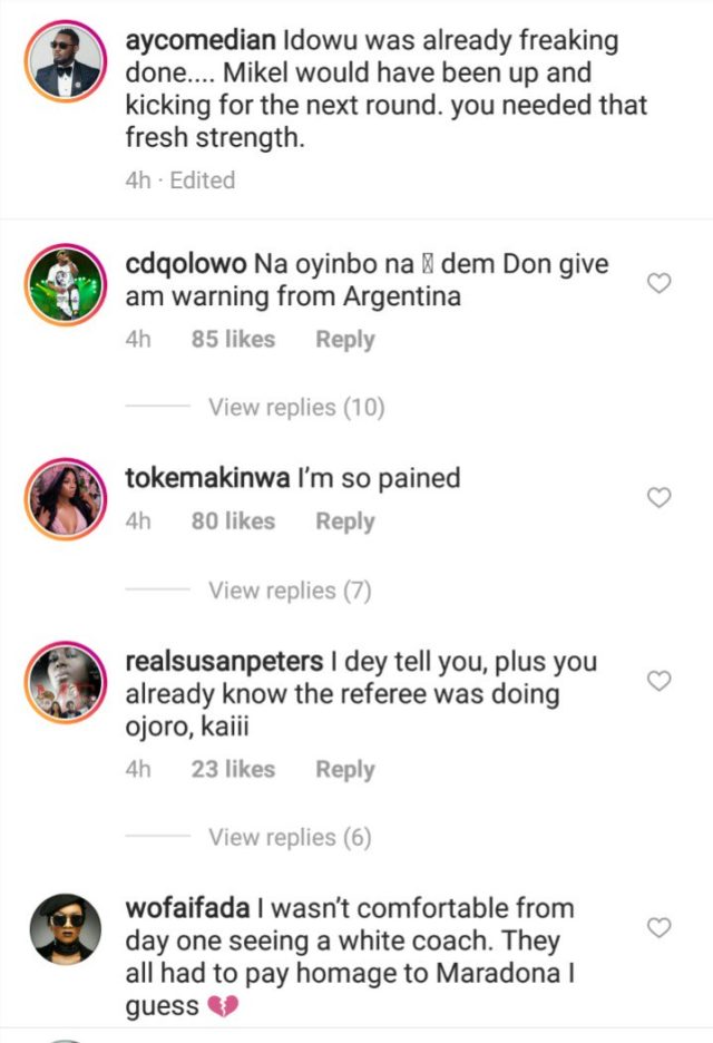 “Idowu was already freaking done…. Mikel would have been up and kicking for the next round. you needed that fresh strength.” Furious AY wrote.