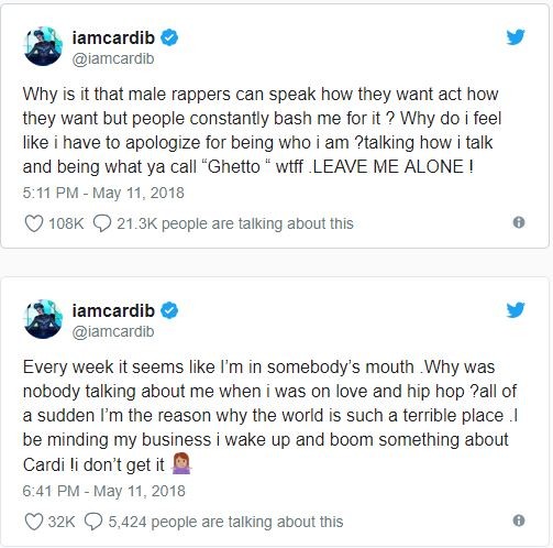 Shortly after the interview aired, Cardi took to Twitter to hit back at her critics for constantly dragging her out