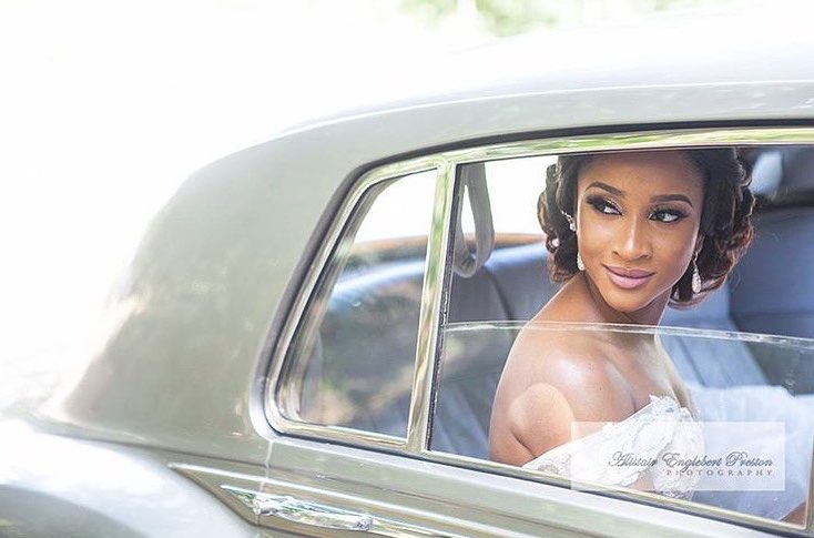 Adesua also left her hotel room in a classic vintage rolls royce..