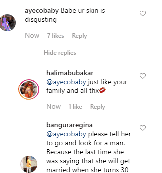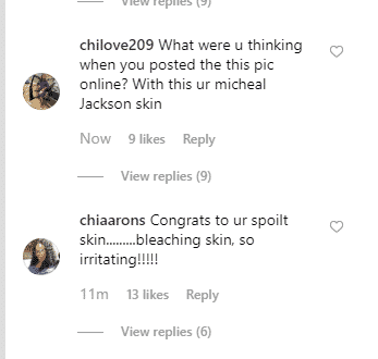 However, some of her fans were less than pleased with her new looks because of her skin and they had a message for her, see comments below ;