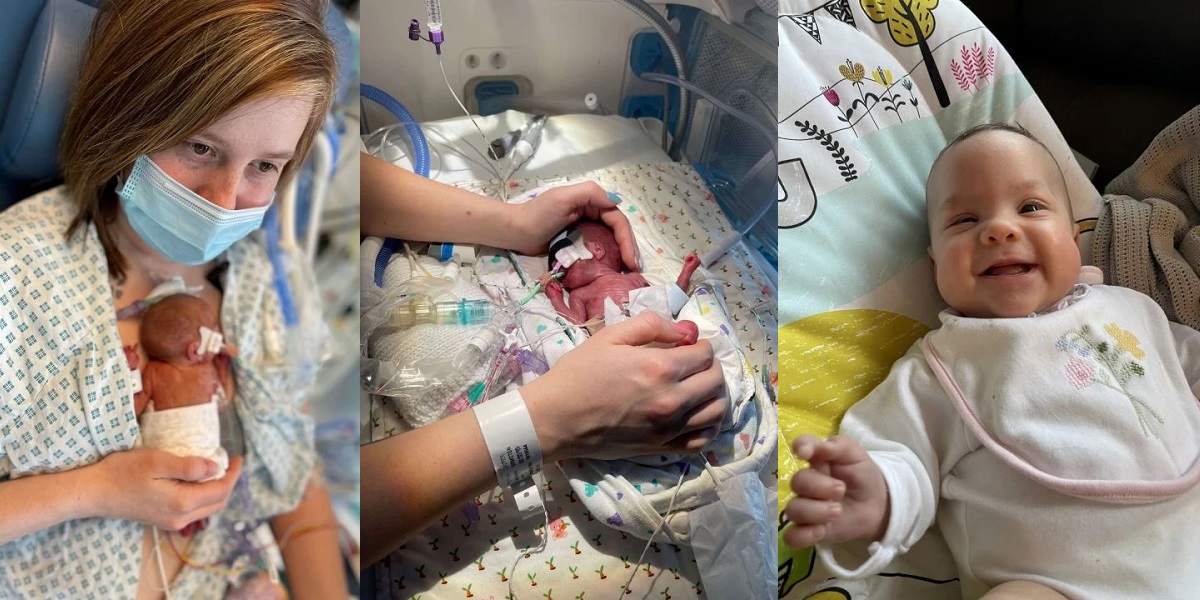 The child was born on the 4th of March 2022 after her mother, Lauren Ormston, 27, went into premature labour at just 23 weeks at St Peter’s Hospital, Surrey, UK.