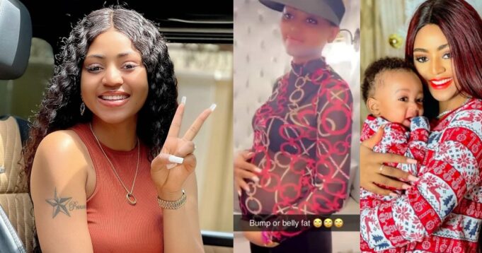 The caption in the video however, reads ; ”Baby Bump or Belly Fat?” and this has left fans guessing which scenario it could be.