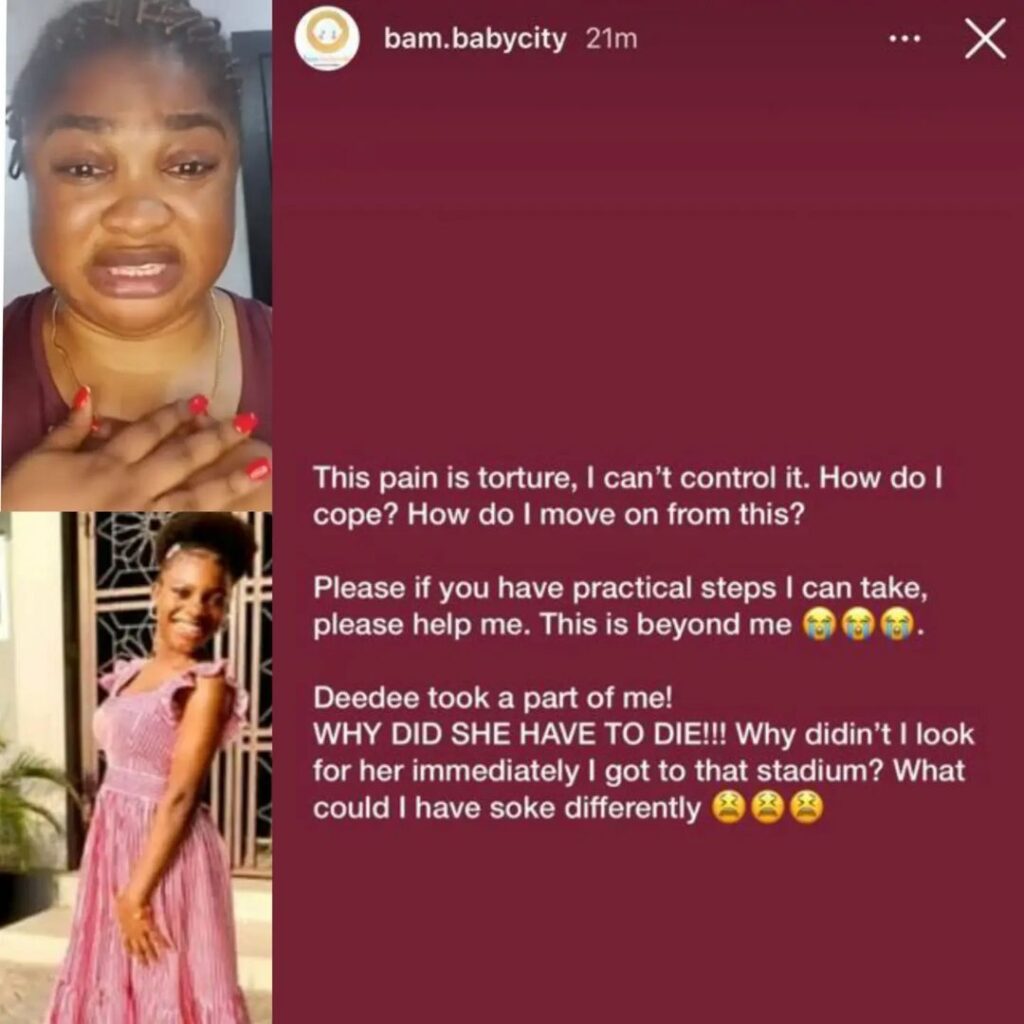 WHY DID SHE HAVE TO DIE!!! Why didn’t I look for her immediately I got to that stadium? What could I have done differently