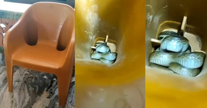 In a video that was shared online, the snakelet was seen crawled up inside the hole of the chair. A vigilant individual spotted the reptile and made a video of it as he held a flashlight against it so as to see it clearly.