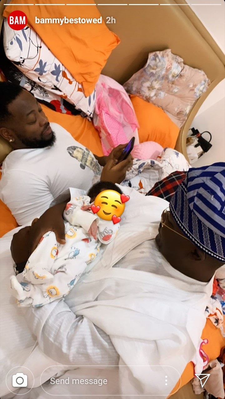 Reality star and proud mother, Bam Bam took to her instastory to share an adorable photo of her dad and her husband Teddy A with her newborn daughter.
