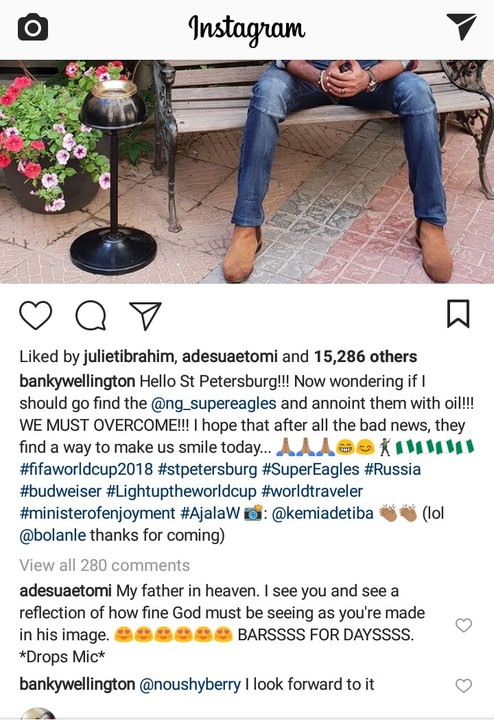 Hello St Petersburg!!! Now wondering if I should go find the @ng_supereagles and annoint them with oil!!! WE MUST OVERCOME!!! I hope that after all the bad news, they find a way to make us smile today…