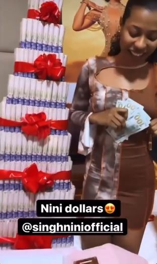 Nini went live on her Instagram page to flaunt the presents as she danced happily while posing with the gifts.
