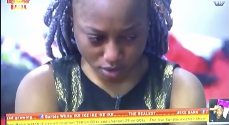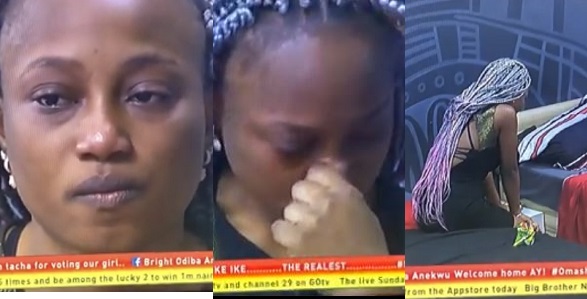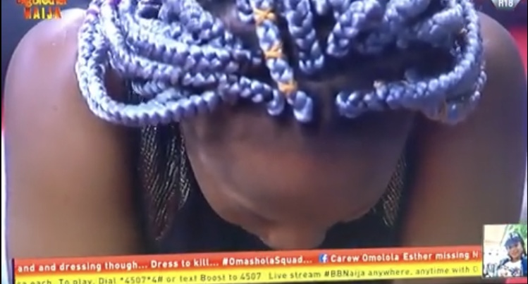 Big Brother Naija housemate, Esther who was romantically entwined with newly evicted house mate, Nelson was spotted crying shortly after the eviction of her in-house lover.