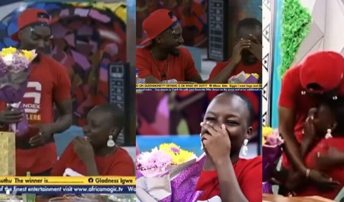 #BBNaija: Sweet love! Moment Jaypaul surprised Saskay with a bouquet of fresh flowers (video)