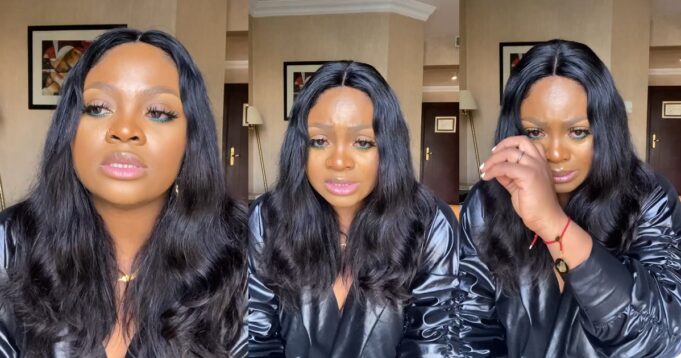 Former BBNaija ‘shine ya eyes’ housemate, Tega, has publicly apologized to her husband, Ajeboh Lawrence, for having an affair with fellow evicted housemate, Boma, on LIVE TV.