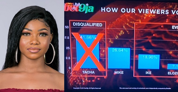 BBNaija Sunday’s eviction is over and as usual, the voting Results were made public by the show and it revealed the huge GAP Tacha would have used to survive that eviction had she not been disqualified.