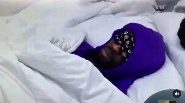 Saga and the other housemates pleaded with Biggie to open the door, but when their plea fell on deaf ears Saga went in to get his duvet, picked a comfortable position in front of the diary room to spend the night. Angel and Pere later joined him till they all slept off.