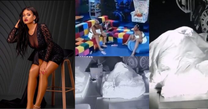 It was earlier reported that the newest BBNaija couple, couldn’t get enough of each other as they were seen doing some under-the-sheet movements last night.