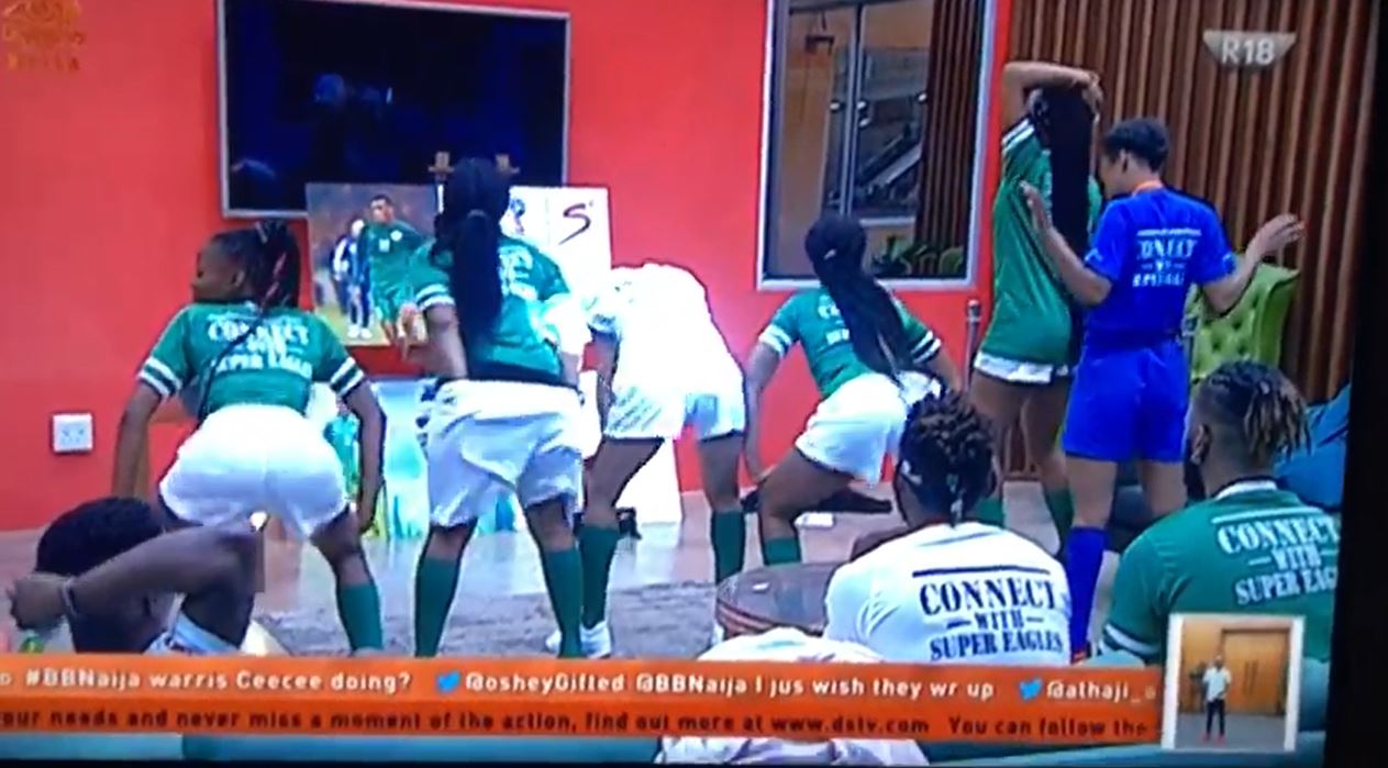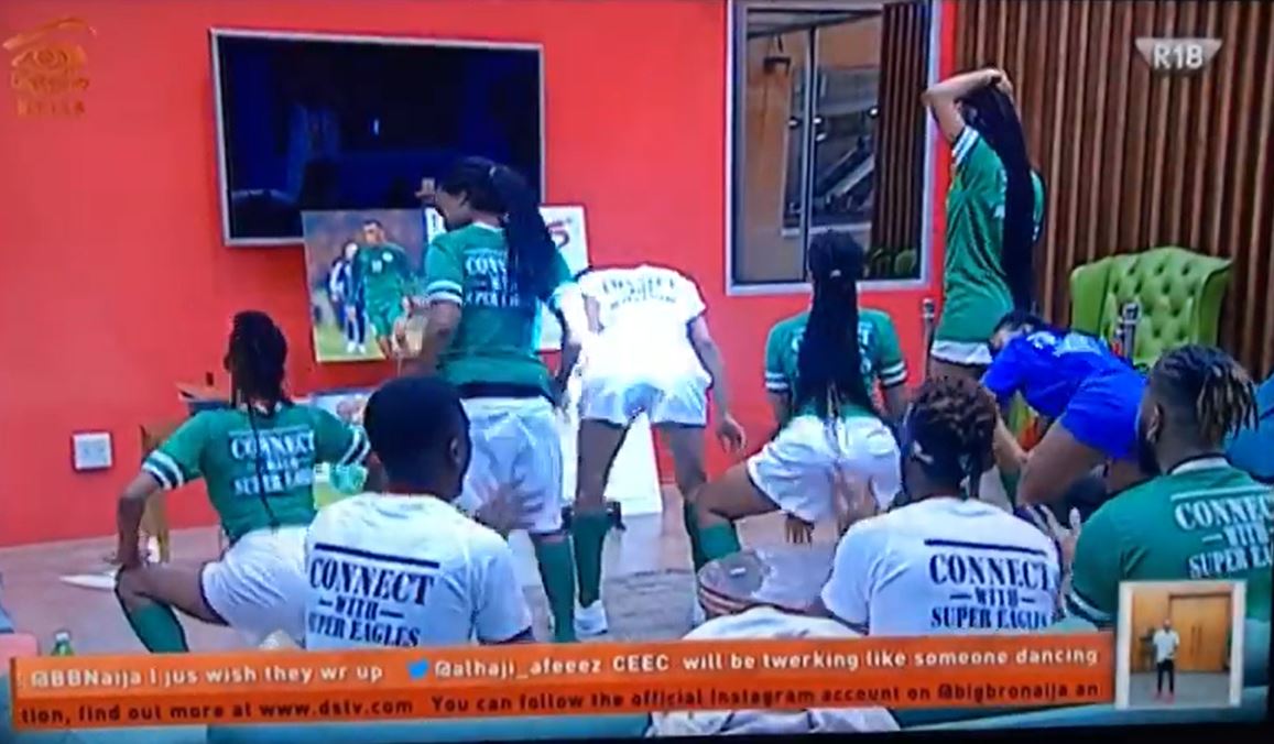 On Wednesday evening, housemates were presented with a task by Biggie which was inspired by Nigerian super eagles team just before they had their footballer guests, Joseph Yobo and Victor Ikpeba visit them.