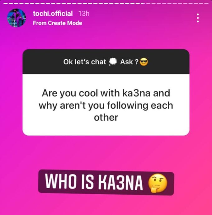 However, Tochi gave a rather shocking response than a satisfying one. To the fan’s question he replied, “who is Ka3na?”