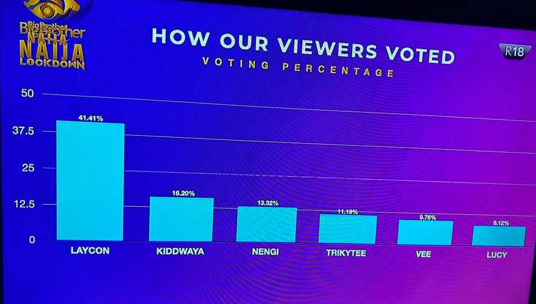 Laycon had the Highest votes with 41.41% votes.
