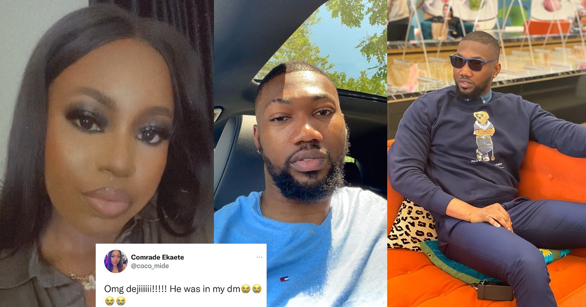 Shortly after Ebuka ushered in the new housemates, @coco_mide took to Twitter to disclose that Deji slid into her DM sometime ago and added several crying emojis which suggests that she probably regrets not giving him audience at the time.