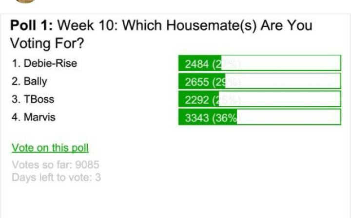 The online poll created the moment the housemates up for eviction this week were announced, has seen Marvis in a staggering lead.