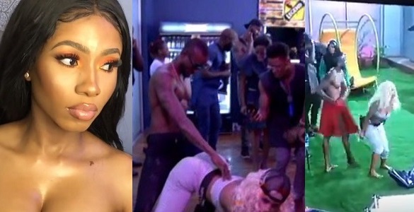 Mercy, yesterday after the Saturday night party excited other housemates as he stripped, by pulling down her trouser to show off her booty, while she danced.