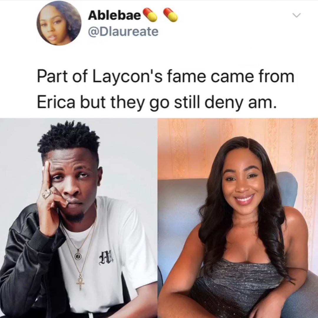 “Part of Laycon’s fame came from Erica but them go still deny am”, she said.