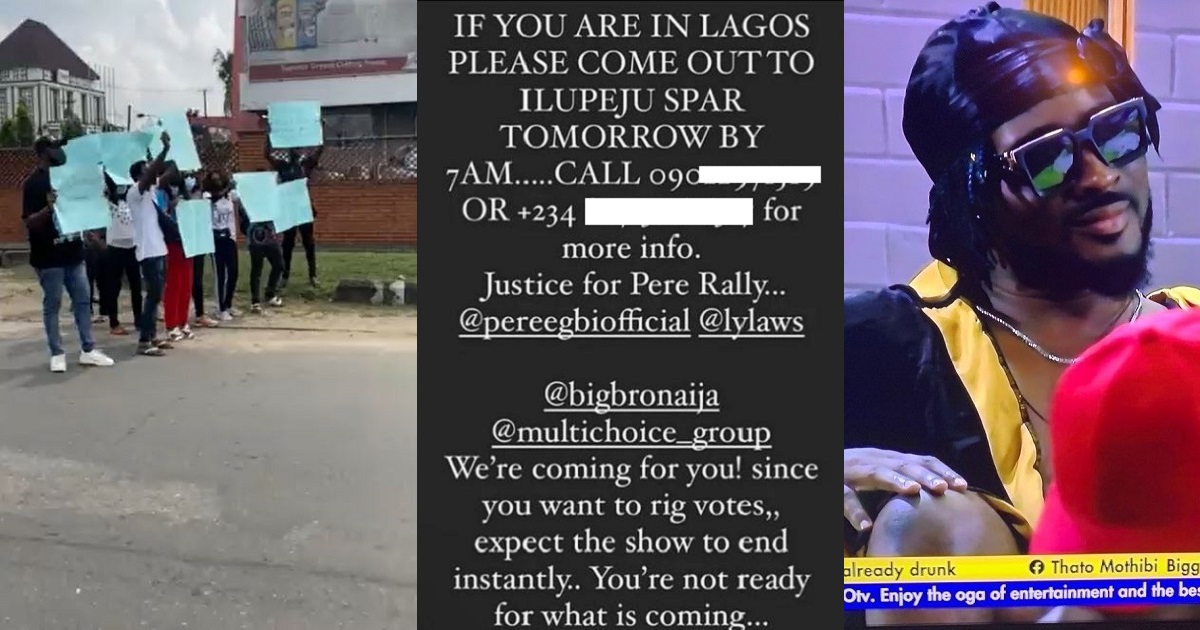 “IF YOU ARE IN LAGOS PLEASE COME OUT TO ILUPEJU SPAR TOMORROW BY 7AM CALL 09022971519 OR +234 807 306 6317 for more info. Justice for Pere Rally… @pereegbiofficial @lylaws@bigbronaija @multichoice_group We’re coming for you! since you want to rig votes, expect the show to end instantly. You’re not ready for what is comin….”