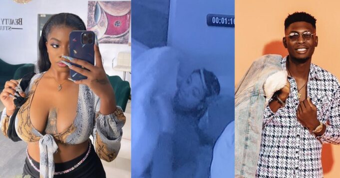 Big Brother Naija housemates, Angel and Sammie were spotted cuddling under the sheets last night, moments after Angel told Sammie he’s her spec.