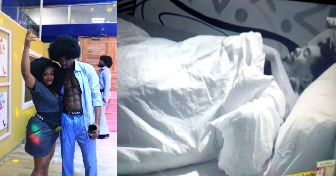 Big Brother Naija viewers have taken to social media react to Boma and Tega ‘touching’ themselves under the duvet after lights out.