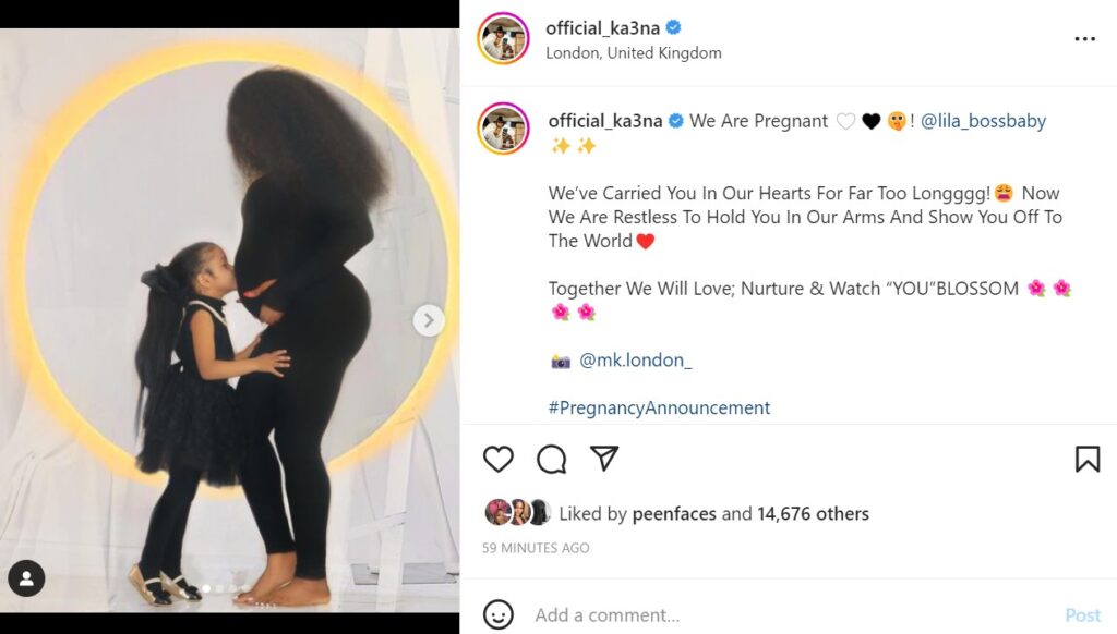Congratulations are in order for Big Brother Naija star and brand influencer, Ka3na, as she announces that she is pregnant with her second child.